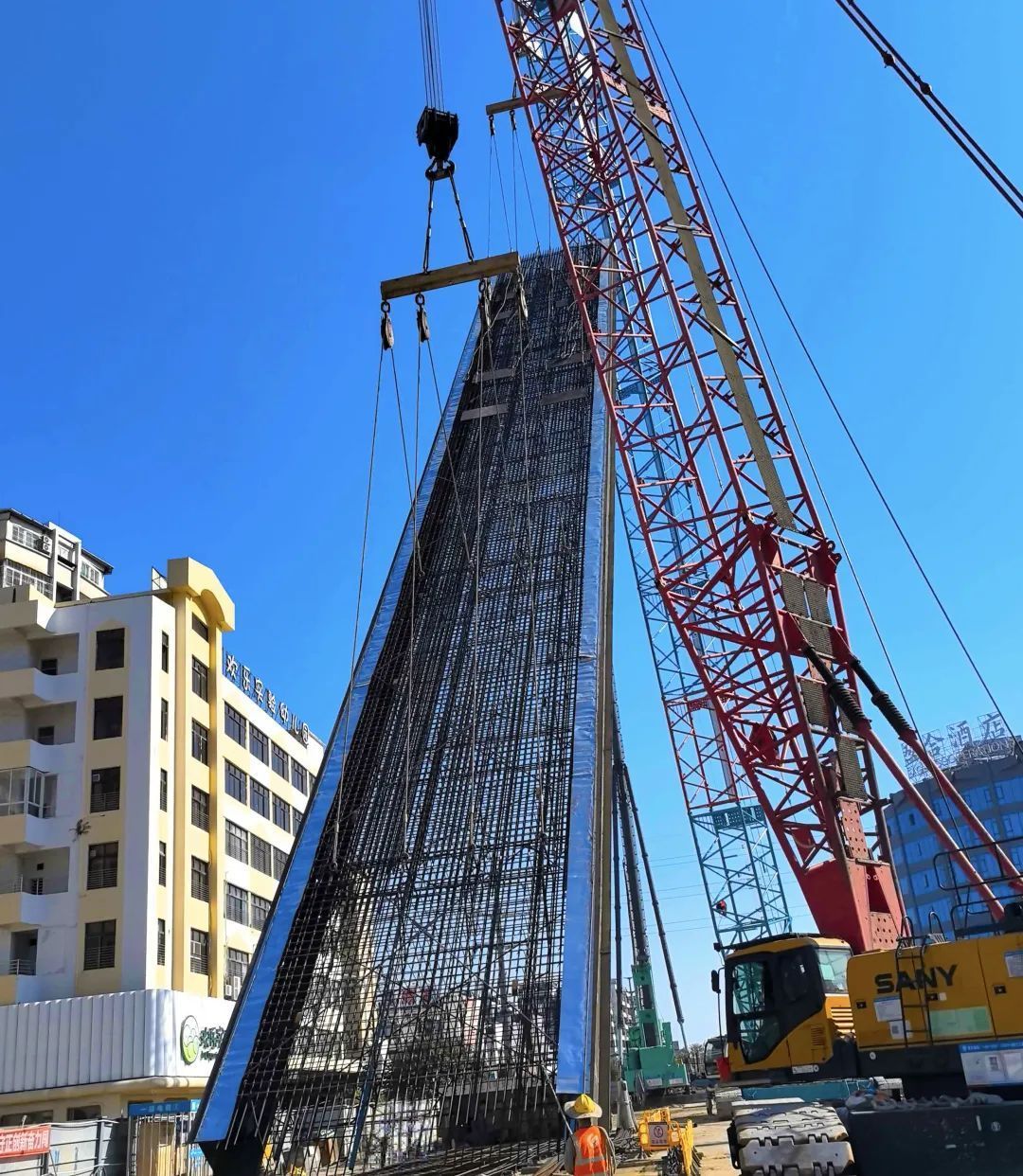 ▲最后一幅地下连续墙吊装入槽